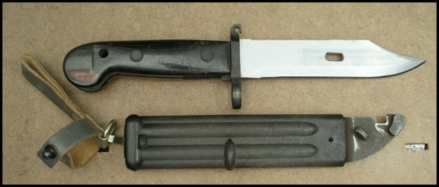 Transitional model: AKM Type I bayonet with AK-74 scabbard.